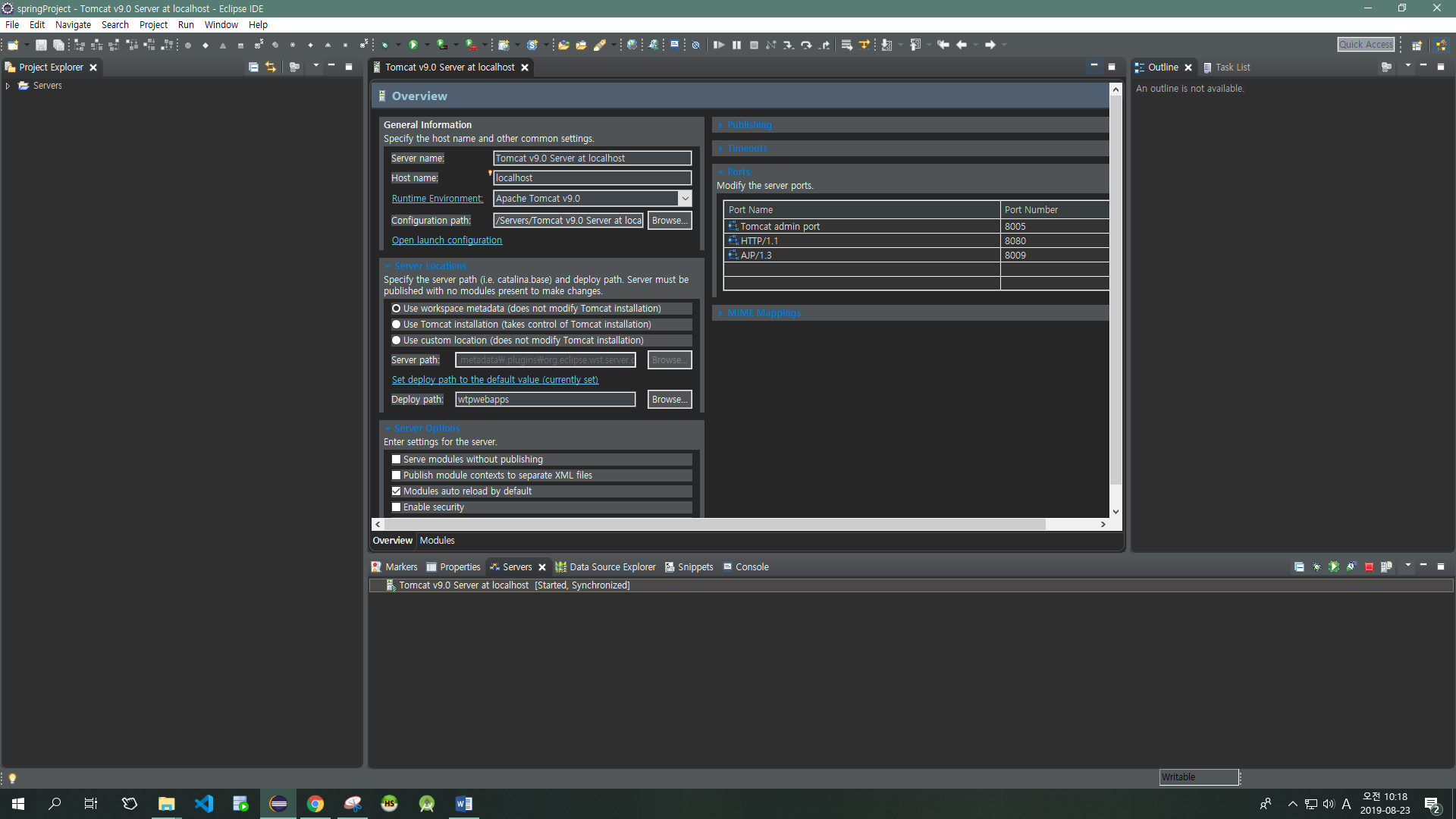 실행시키면 이클립스처럼 뜬다. 아까 서버를 연결해두었던 프로젝트라 연결되어있는 것을 확인할 수 있다.
