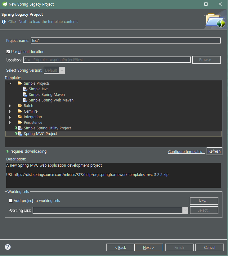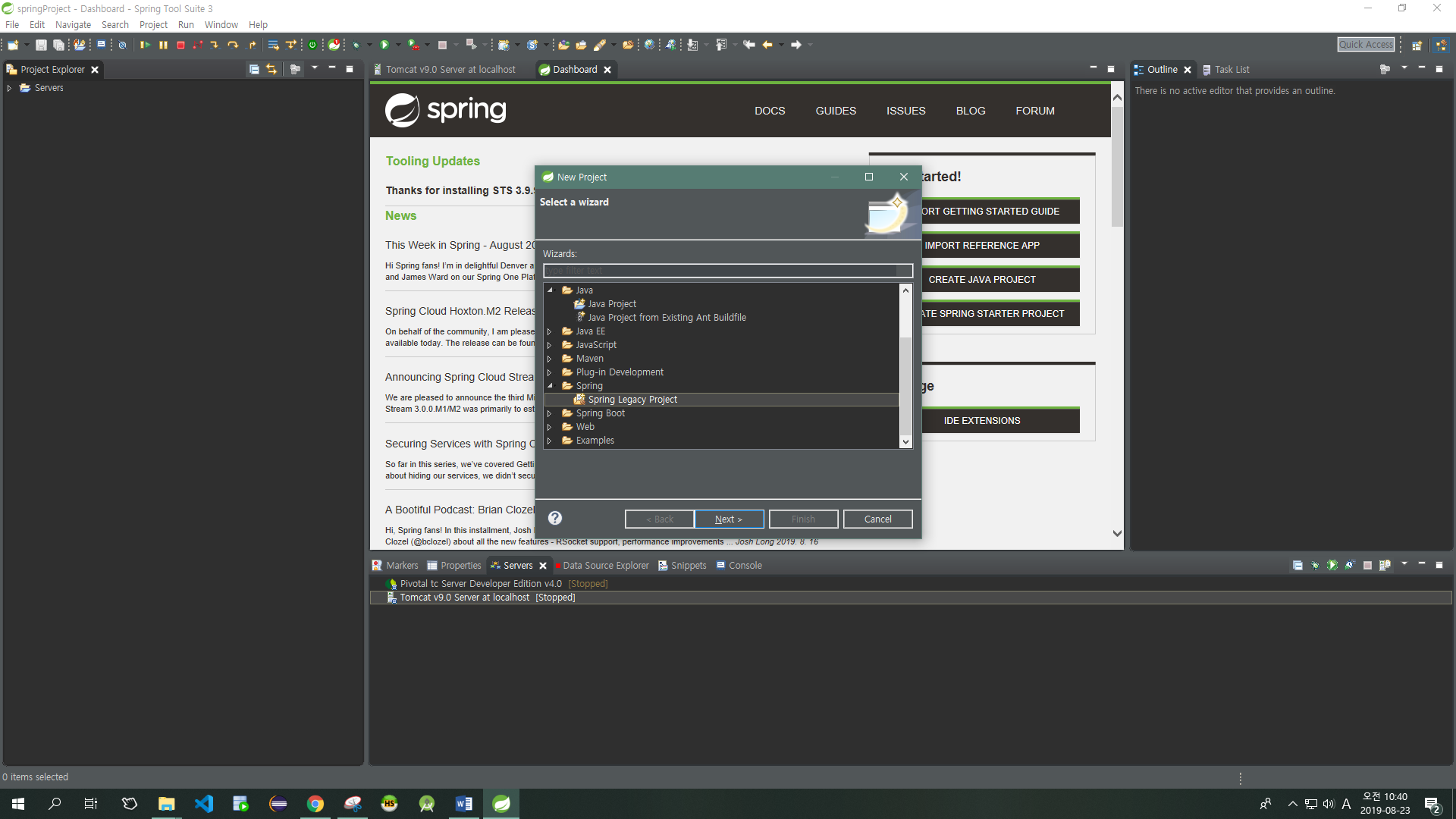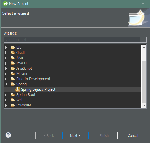 4버전으로 새로운 경로폴더를 만들었는데 이 버전은 기본 스프링 > 레거시프로젝트가 없다.