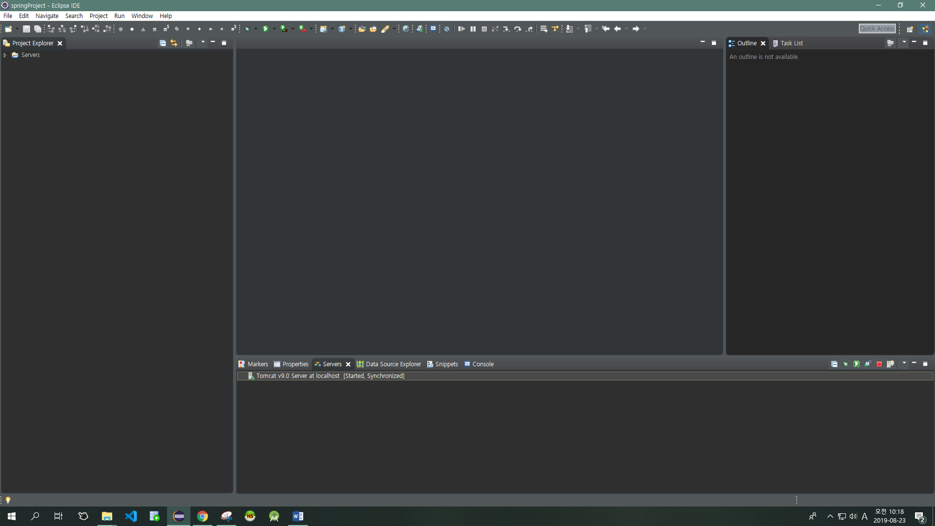이클립스에 가서 서버를 연결해준다. 화면에 없으면 View > other > server를 클릭해서 나타나게 한다.