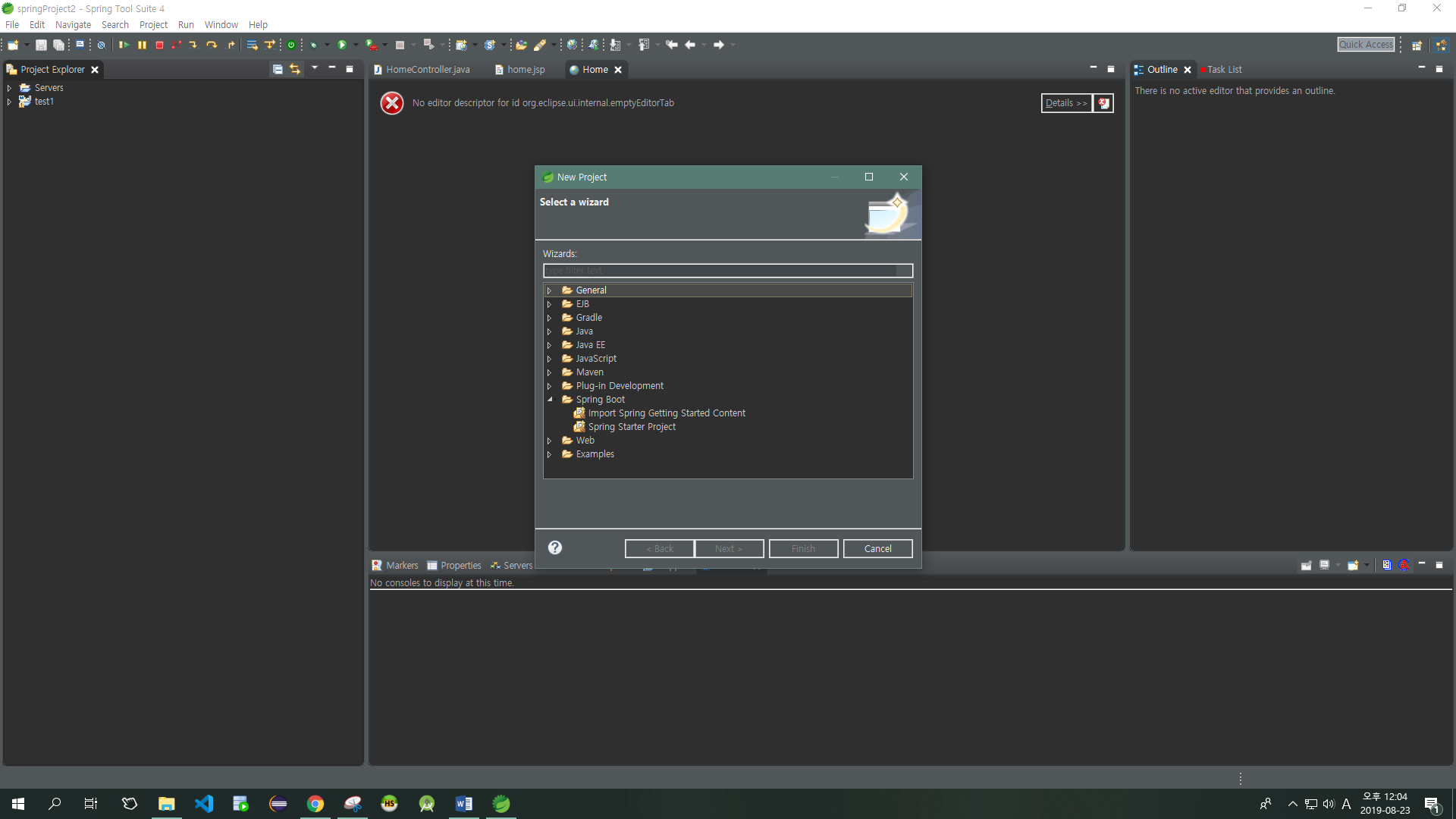 보통 두번째는 회사명 세번째는 프로젝트명으로 많이 만든다. 생성 후 플젝에 에러뜨는 것은 라이브러리를 아직 받는 중이어서 그렇다. 그래도 이전처럼 직접 라이브러리를 받을 필요가 없어져서 좋아진거라고 한다.