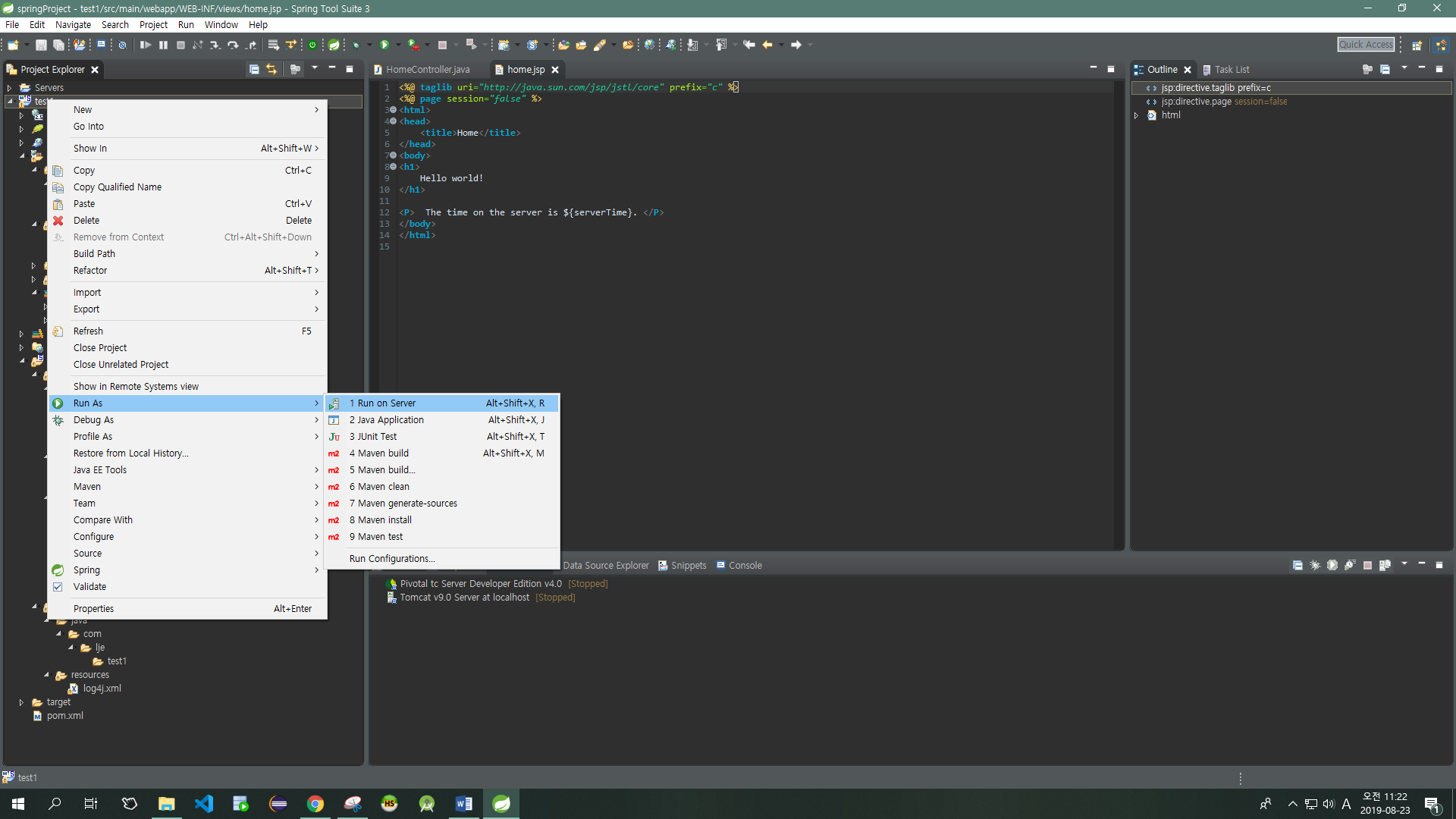 | Spring MVC 개요, 구조, Resourse 폴더, 컨트롤러 구현 (전통적인 3버전 방법) (0) | 2019.08.27 |