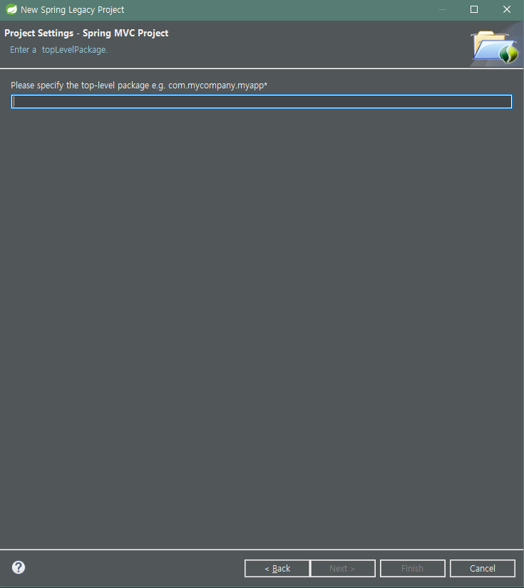 그 이전의 팝업은 OK하고 패키지 경로는 3단계로 자유로이 적어준다. url 거꾸로 적듯 하는건데 com.lje.test1으로 했다.