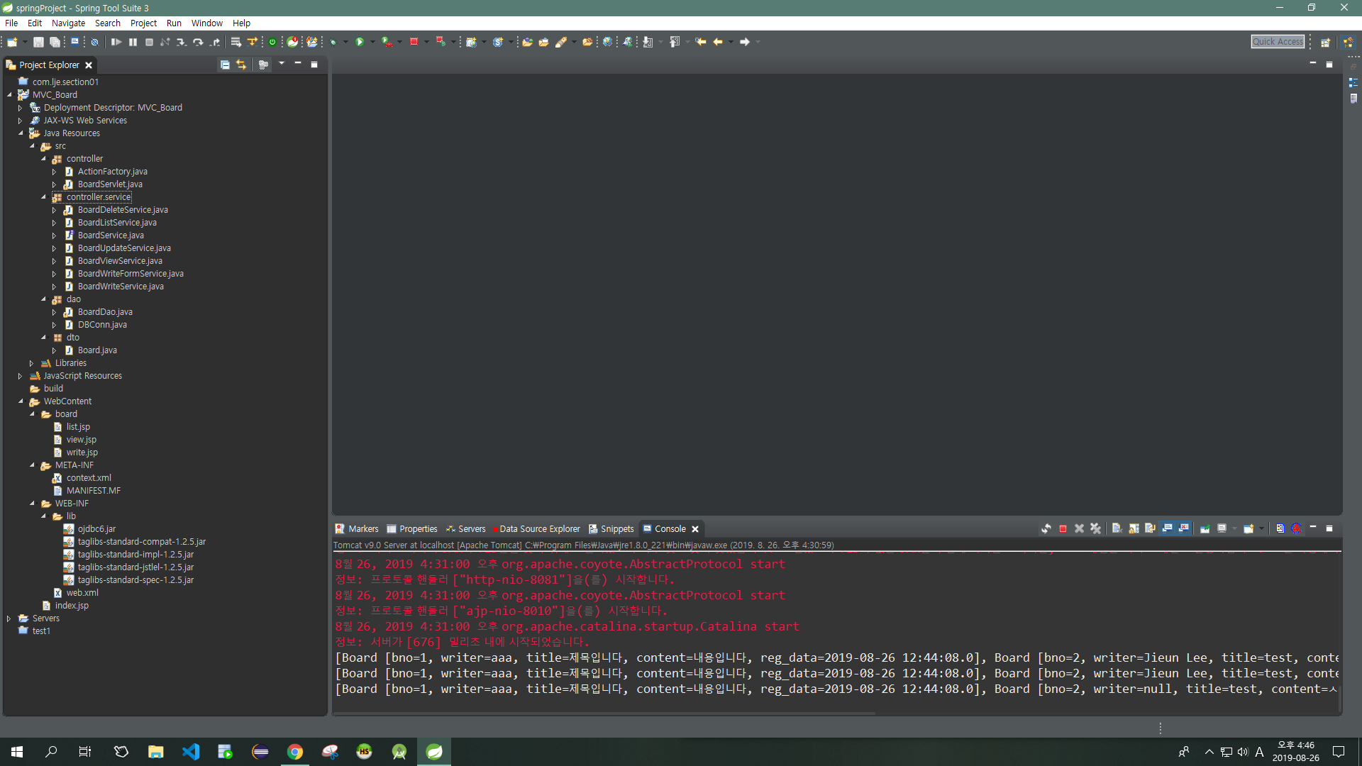 | Spring MVC 패턴 스프링 게시판 만들기 (1) | 2019.08.27 |