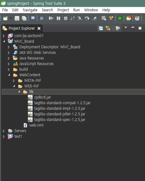 톰캣 홈페이지의 Taglibs에 들어가 네가지를 다운받은 후, lib폴더에 붙여넣는다.