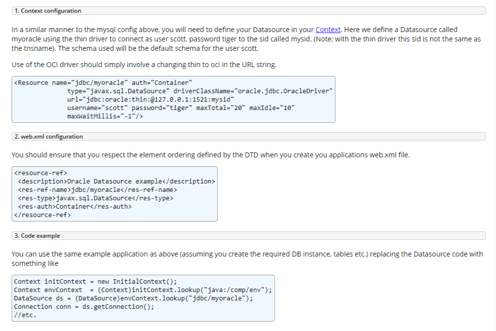 아파치 톰캣 웹사이트에 들어가 document > Oracle 부분의 소스를 참고할 것이다.