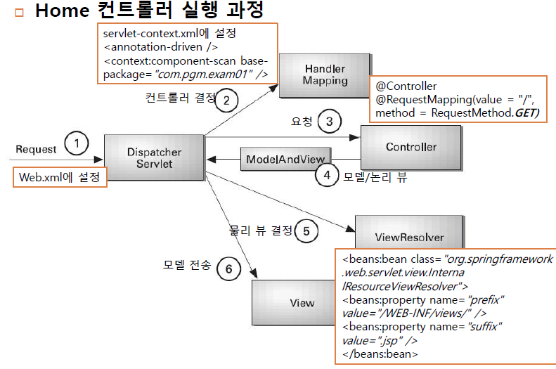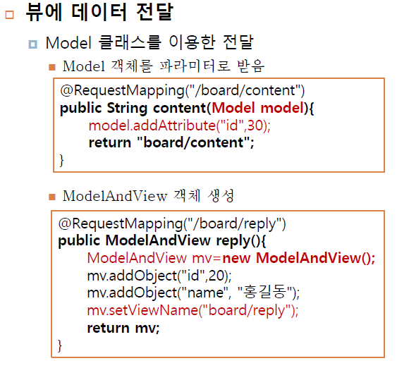 3. 처리 결과를 Model(데이터를 실어준다)과 논리View(데이터를 표시)로 다시 Dispatcher Servlet으로 돌려준다.