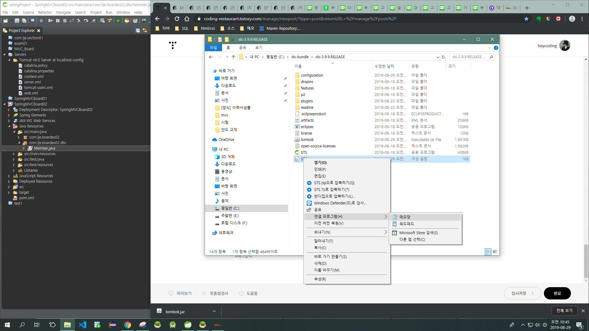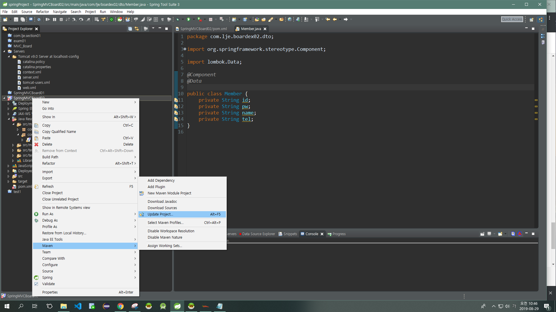 메모장으로 확인해 봤을 때 잘 들어가있으면 된 것이다. Maven > Update 로 새로고침 후 작업을 계속한다.