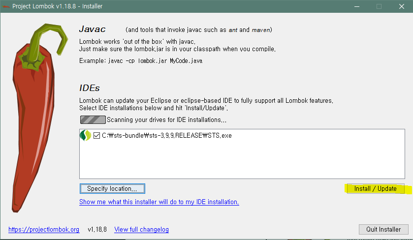 자동으로 getter setter가 안된다면 아래 홈페이지에 들어가서 jar를 받은 후 sts폴더 아래 넣어준다.