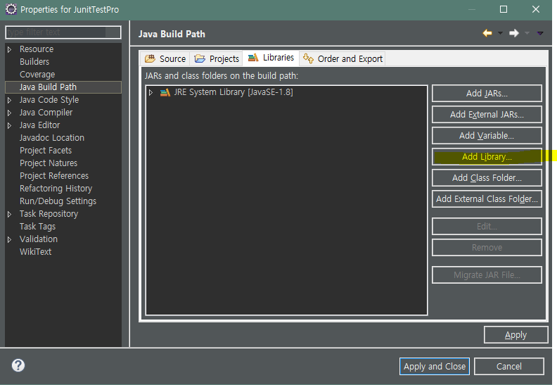 Eclipse - JUnit 설정