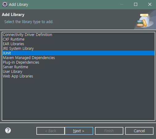 4. JUnit을 선택하고, Next 버튼 선택