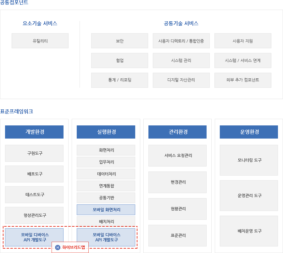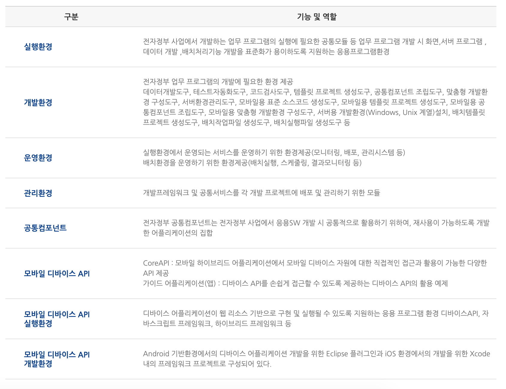 ※ 표준프레임워크는 기존 다양한 플랫폼(.NET, php 등) 환경을 대체하기 위한 표준은 아니며, java 기반의 정보시스템 구축에 활용하실 수 있는 개발·운영 표준 환경을 제공하기 위한 것입니다.