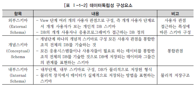 다. 데이터독립성 요소