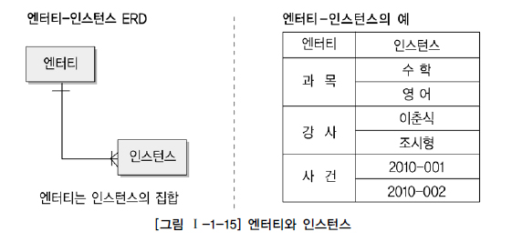 데이터 모델링에서는 이 세 가지 개념에 대해서 단수와 복수의 개념을 분명하게 구분하고 있고 실제로 데이터 모델링을 할 때 많이 활용되는 용어이다.