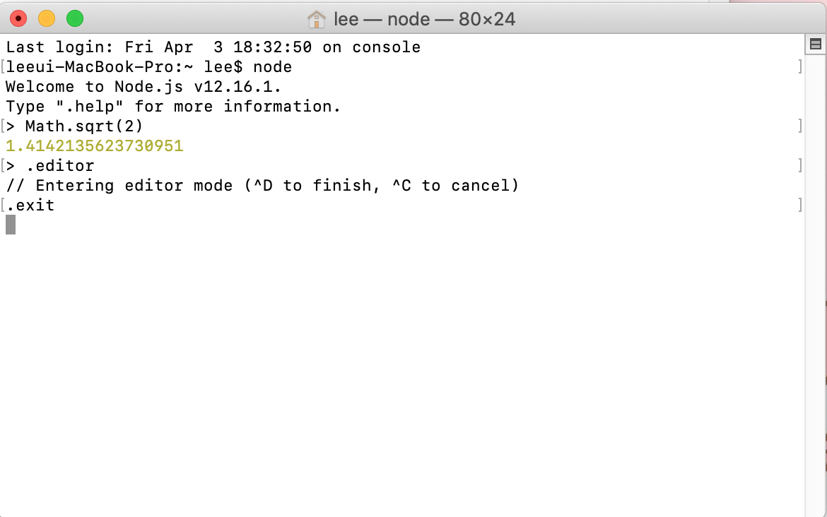 3. Node.js의 대화형 모드 (REPL)로 실행