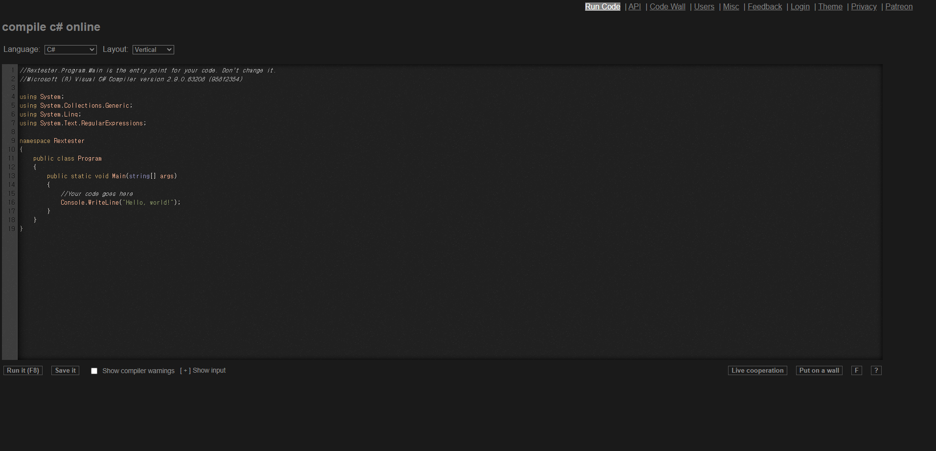 Online C# Compiler - online editor