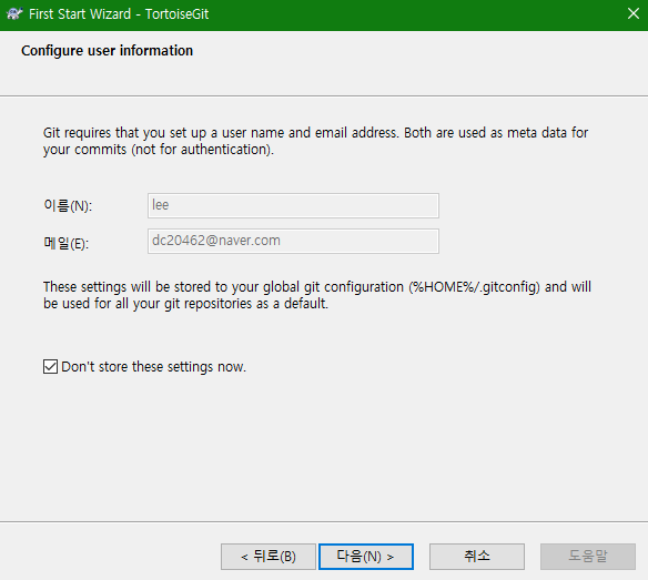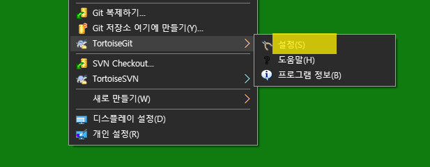 언어 설정이 안된 분들은 바탕화면에서 우클릭하여 설정 메뉴에 들어가 한국어로 선택할 수 있습니다. 이어서 설정 창에서 아까 나중에 설정하겠다고 한 사용자명과 메일 주소를 등록합니다.
