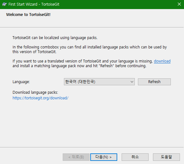 2 TortoiseGit + 언어팩 설치