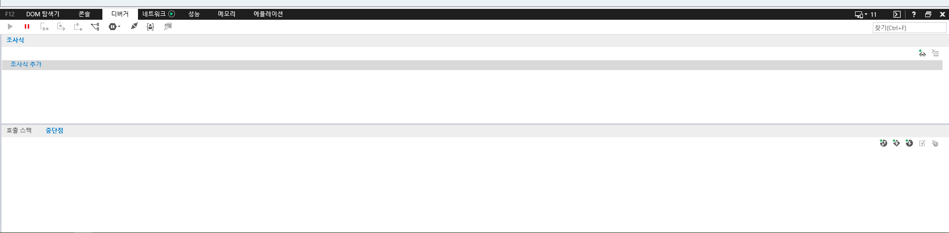 | 3. 디버거 조사식 왼쪽 리사이징 바 마우스로 조절 | 조사식 왼쪽 부분 바를 잡고 우측으로 드래그 | 성공 |