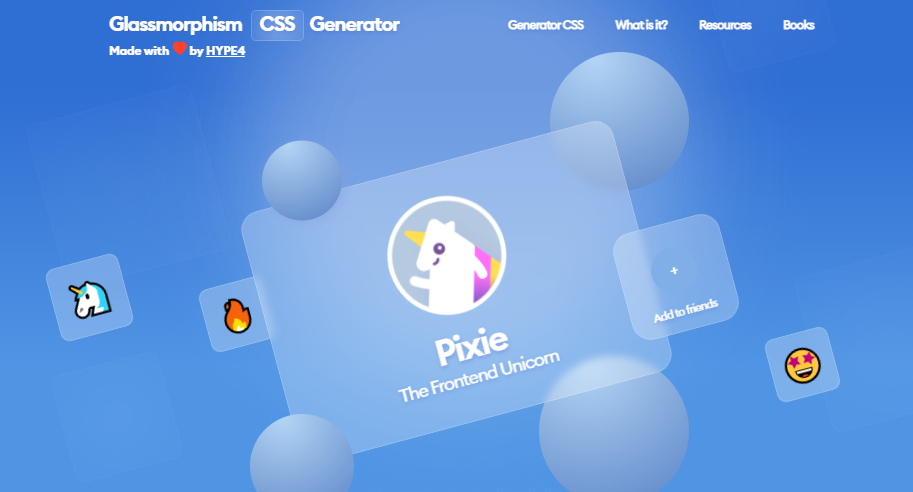 쉽게 글래스모피즘 CSS를 만들어주는 제너레이터. 아래 이미지를 클릭하면 이동.