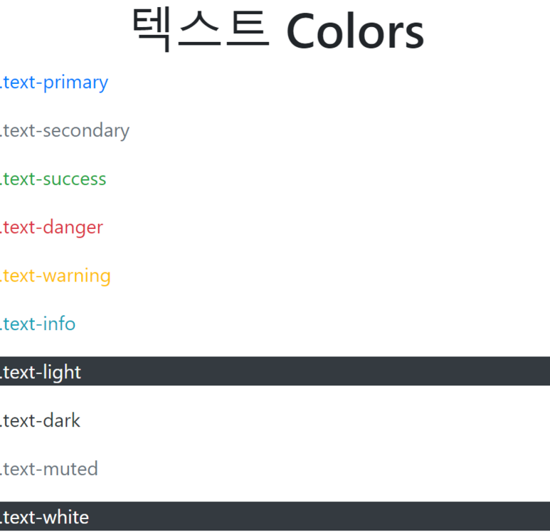 글자색 클래스 : <h1 class="text-center">텍스트 Colors</h1>