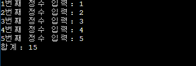 문제 1 : 사용자로부터 5개의 정수를 각각 받아 합을 출력하는 프로그램