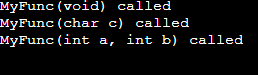 std::cout<<"MyFunc(int a, int b) called"<<std::endl;
