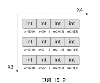 2차원배열의 선언 : 2차원적 메모리 구조를 구성