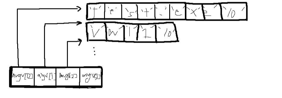 argv[]는 포인터 배열로 되어 있습니다 (예 : test.exe val1 val2 val3)
