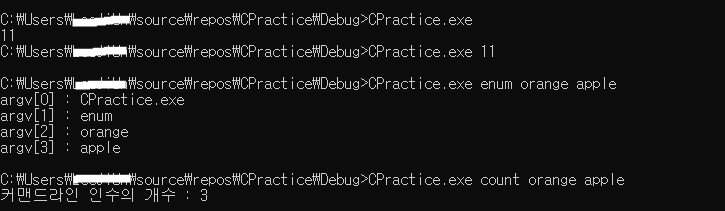 argc : 배열 argv[]의 크기 (커맨드라인 인수의 개수 +1)