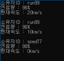cout << "현재속도 : " << curSpeed << "km/s" << endl<< endl;