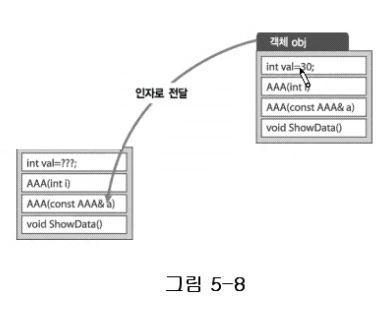 // 2. a 객체의 복사본 객체의 복사생성자를 호출하면서 복사의 대상인 a 객체를 인자로 전달한다