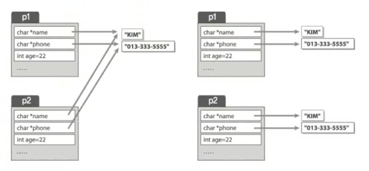 char* name; //name이 멤버지, 포인터가 가리키는 문자열이 멤버가 아니다