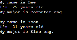UnivStudent ustd2("Yoon", 21, "Elec eng.");