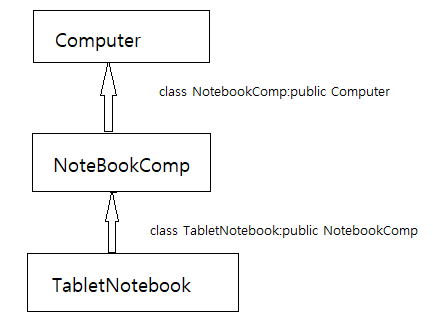 TabletNotebook 클래스가 상속하는 NotebookComp 클래스의 생성자와 NotebookComp 클래스가 상속하는 Computer 클래스의 생성자가 모두 호출된다