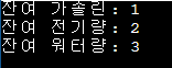 cout<<"잔여 워터량: "<<waterGuage<<endl;