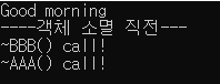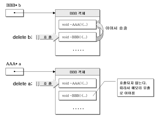 ~BBB() //소멸자가 호출될 떄 A클래스 소멸자도 호출된다