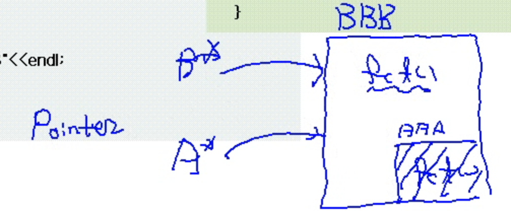 //BBB* b = new BBB("Good", "morning"); //b클래스의 객체를 생성하고 b클래스 포인터로 참조