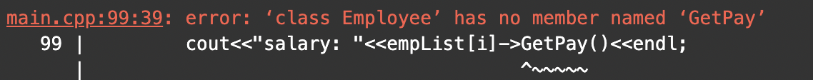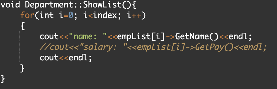 cout<<"salary: "<<empList[i]->GetPay()<<endl;