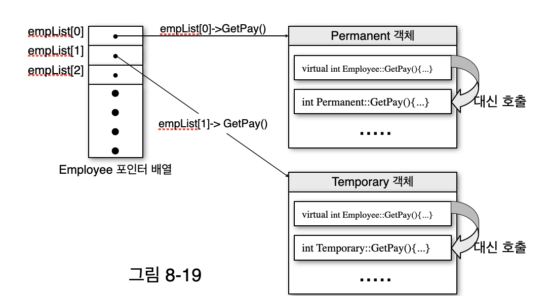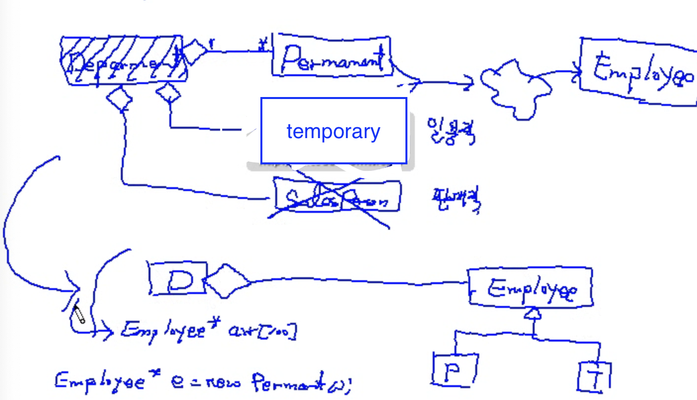 Employee클래스의 포인터배열 이기 때문에 상속하는 모든 클래스의 객체는 참조가 가능하다