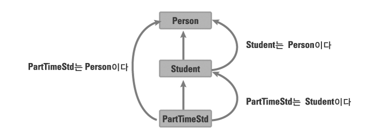 Student는 Person이다. Person 클래스 포인터 p로 Student 객체를 가리킬 수 있다.