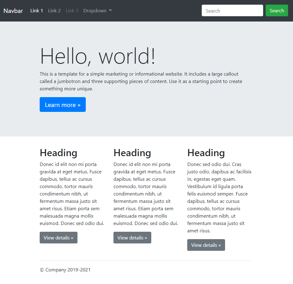 called a jumbotron and three supporting pieces of content. Use it as a starting point to create