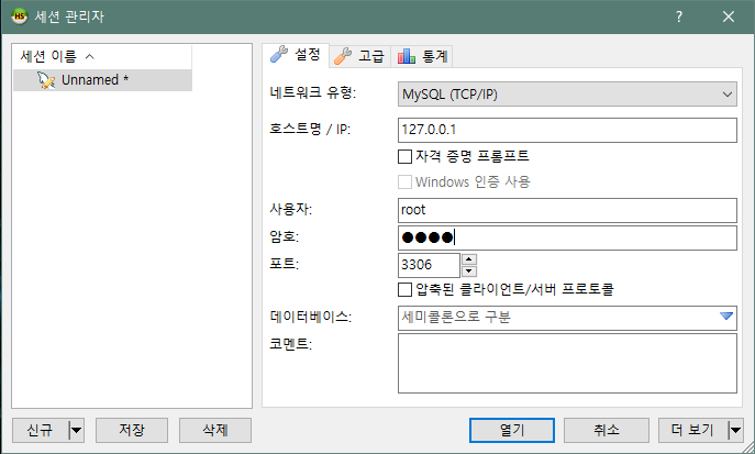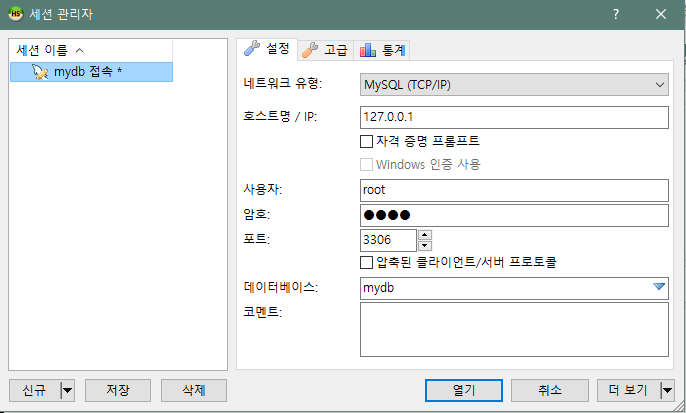HeidiSQL 프로그램에서 테이블을 하나 생성해본다.