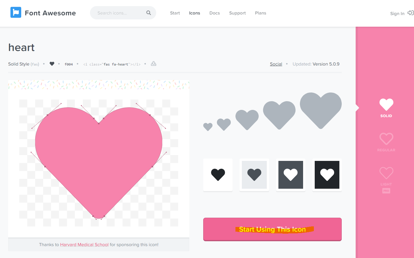 사이트 검색창에서 검색한 후 Start Using This Icon을 누르면 소스코드가 나온다.