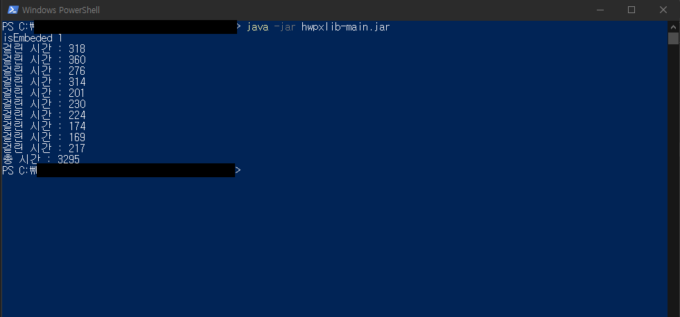 6. Powershell에서 아래와 같이 입력 후 jar 파일을 실행시켜 잘 작동하는 지 확인