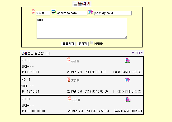 | JSP 파일업로드 기능 구현 (0) | 2019.07.16 |