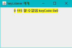 ※ 사용자가 키를 입력하면 입력된 키의 이름 문자열을 화면에 출력한다. %키는 shift 키 입력 후 5를 입력한 경우로서 최종적으로 입력된 키는 5이므로 오른쪽 화면에 5키가 입력되었음이라고 출력되어 있다. f1키를 받기 위해 KeyEvent의 getKeycode()메소드를 이용하여야 하며, % 키는 getKeyChar() 메소드를 이용하면 된다.
