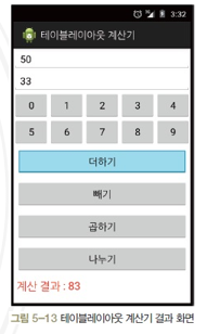 5-6 테이블레이아웃을 활용하여 숫자 버튼까지 있는 계산기를 만들어보자.