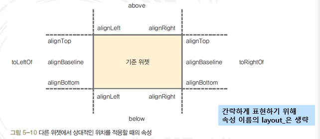 다른 위젯의 상대 위치에 배치할 때는 다른 위젯에 id를 지정해서 사용