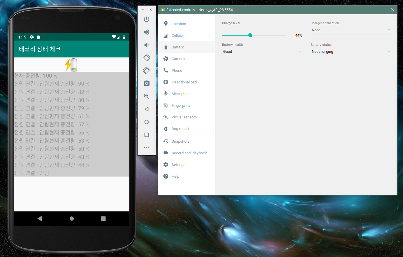 배터리상태 체크 예제